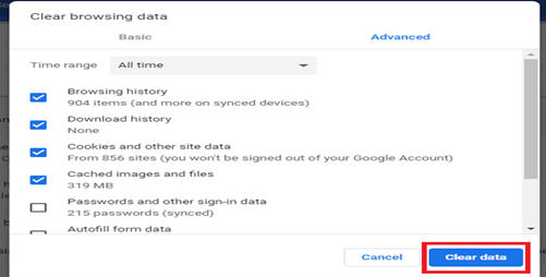 - Click Clear data.