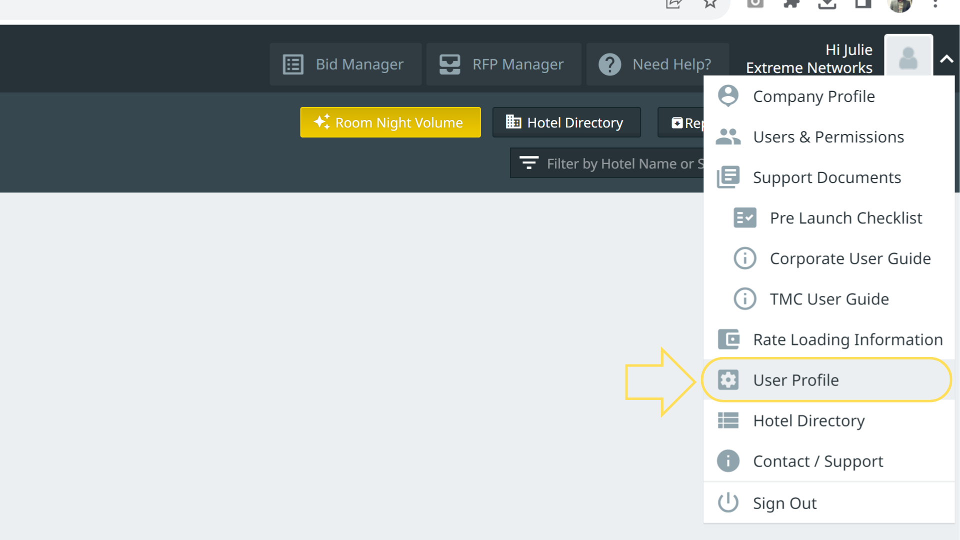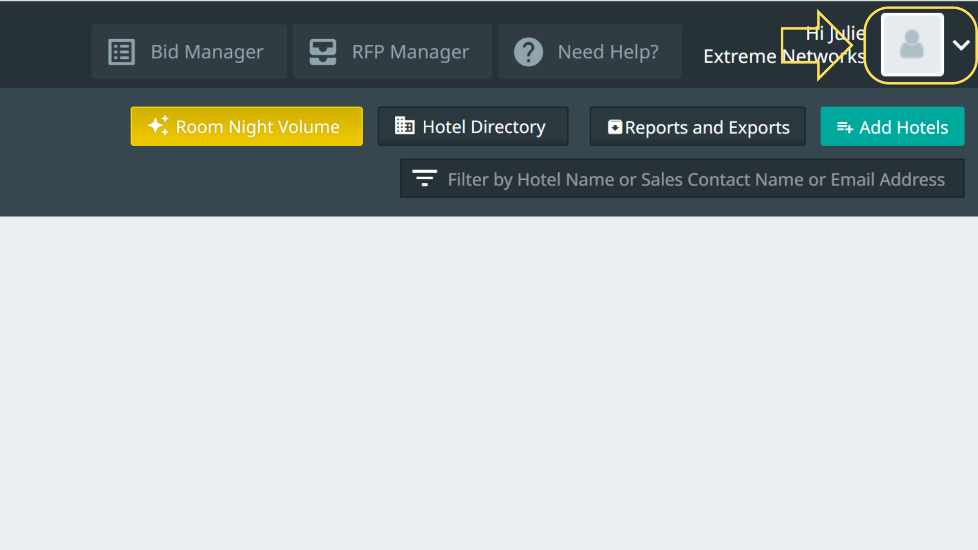 1. From your bid manager, click on your user icon at the very top right part of your screen.