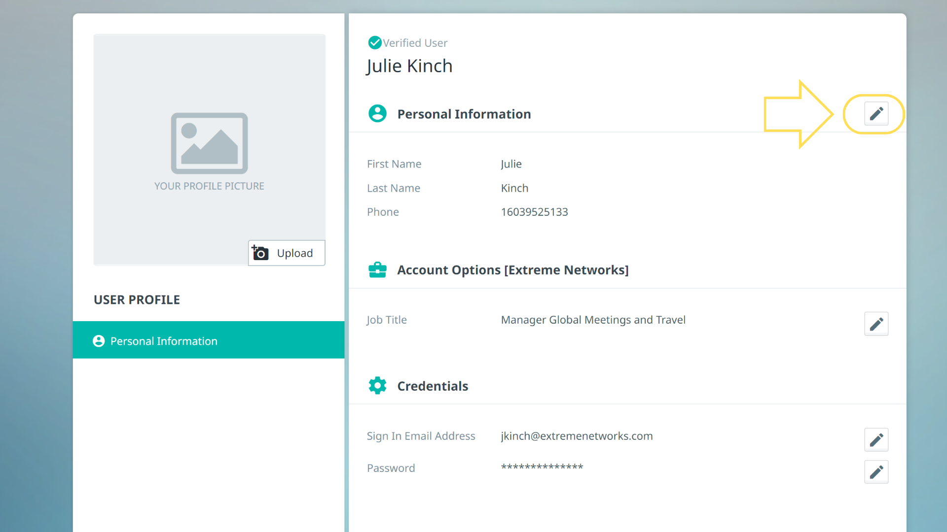 6. On Credentials, you can click on the pencil icons to change your Email Address and Password. Next time you log in, you will be asked for the new email address and password that you entered.
