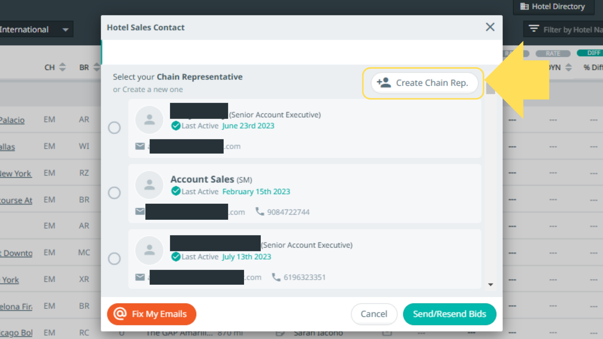 6. If your NAM contact doesn't appear, simply click CREATE CHAIN REP.